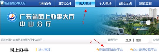 企业投资、政府投资项目首先在广东省网上办事大厅(中山分厅)登记